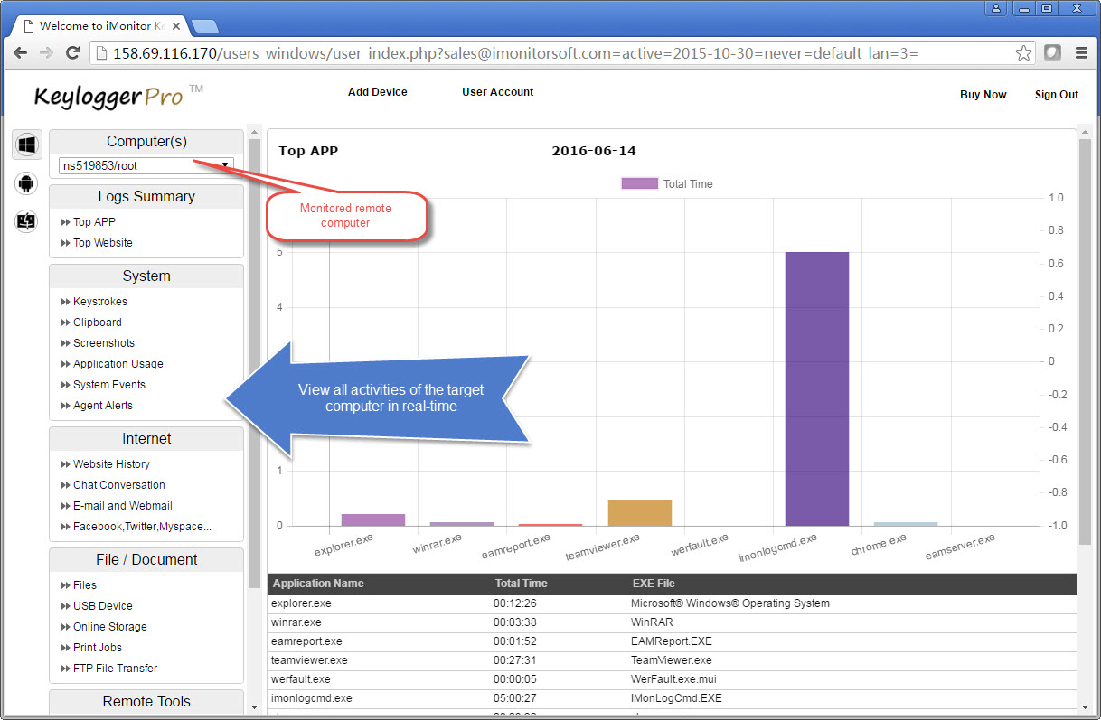 After the installation, please click here to log in the iMonitor Keylogger Pro web console.